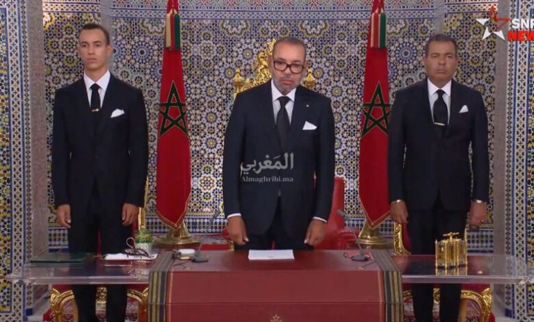 قال الملك محمد السادس إنه “بموازاة مع حرصنا على ترسیخ مكانة المغرب كبلد صاعد، نؤكد التزامنا بالانفتاح على محيطنا الجهوي، وخاصة جوارنا المباشر، في علاقتنا بالشعب الجزائري الشقيق”.